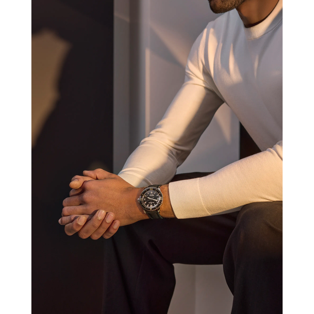 A secured movement is a watchmaking innovation designed to protect delicate mechanisms and ensure lasting precision. By preventing accidental damage when setting the watch, it enhances reliability over time. At Blancpain, secured movements are a hallmark of our craftsmanship.