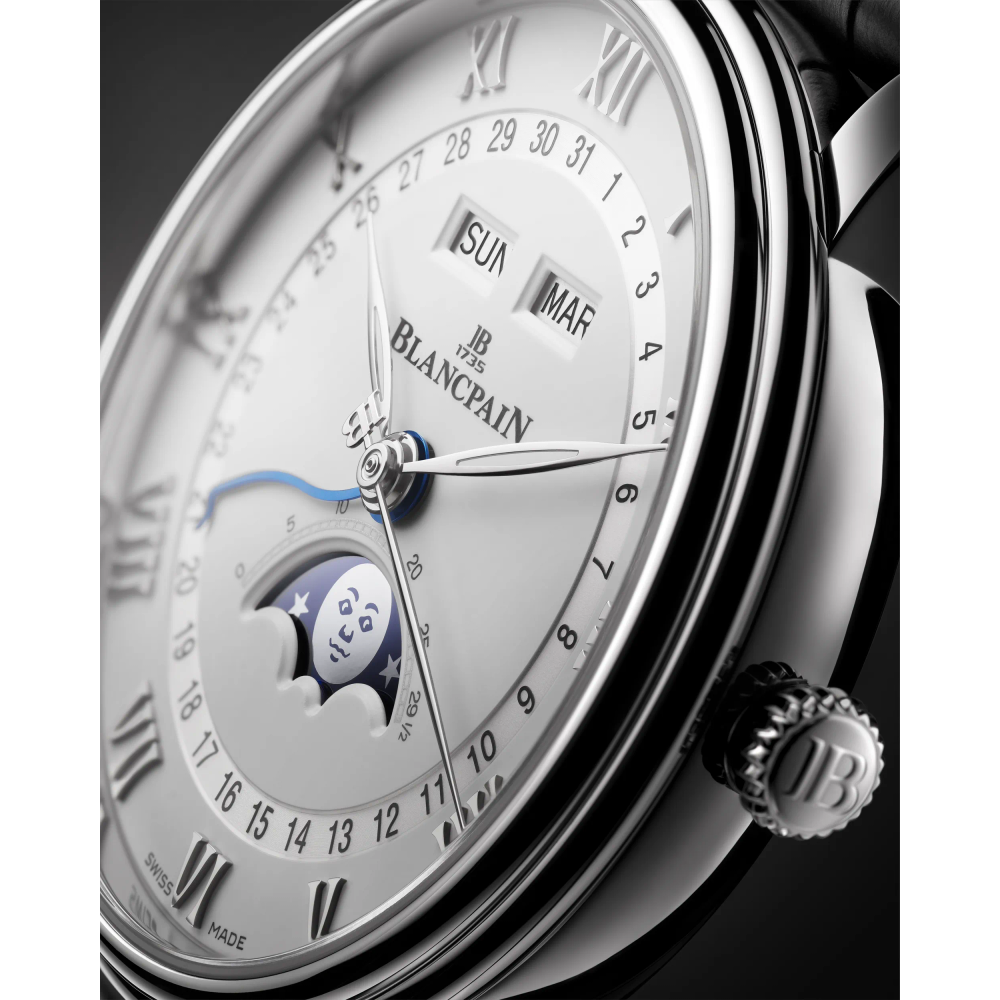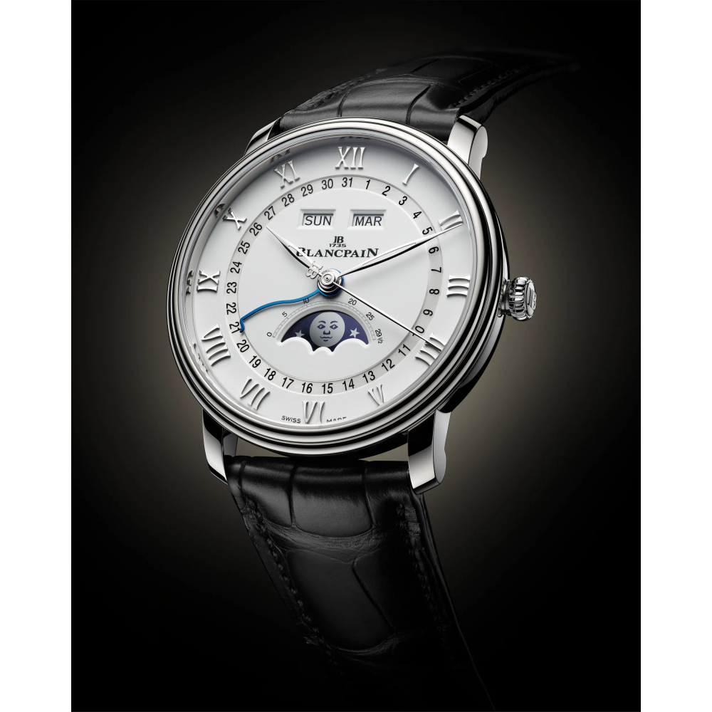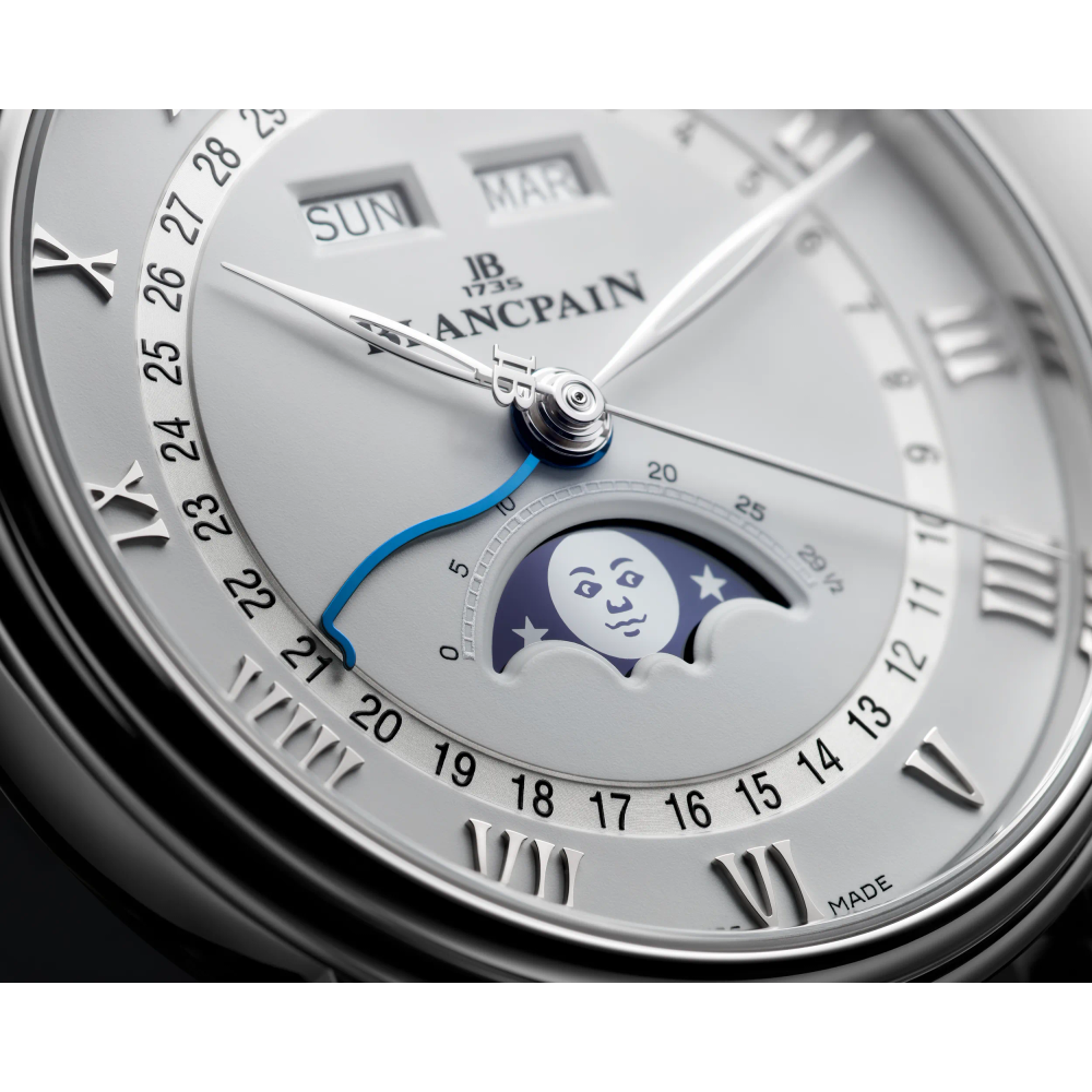 A complete calendar is a watch complication that displays the day, date, and month. Blancpain is renowned for its complete calendar watches featuring a moon phase indicator that offer functionality, poetic note and aesthetic appeal.