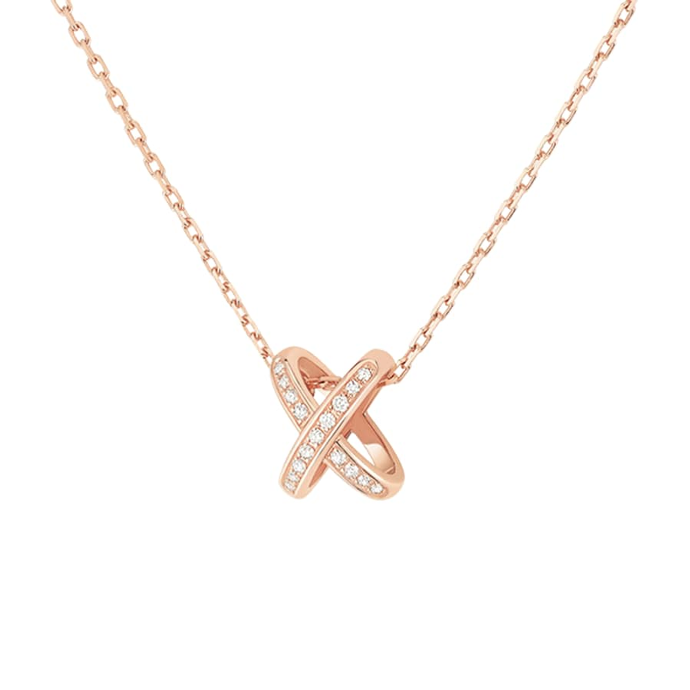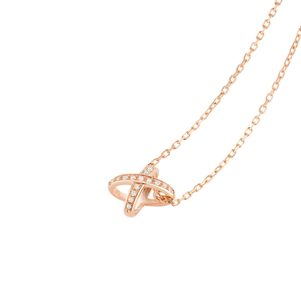 Jeux de Liens pendant in rose gold, set with brilliant-cut diamonds.