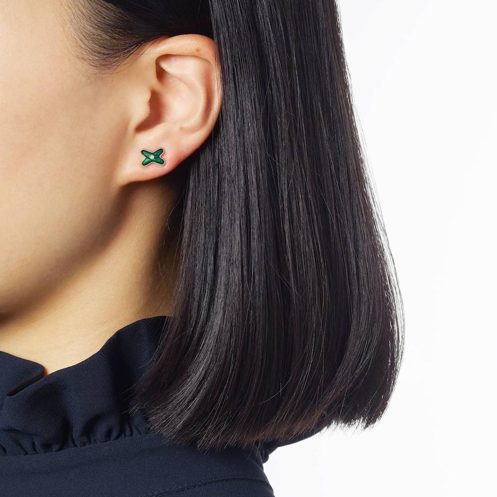 Earring (sold individually) Jeux de Liens in rose gold, set with malachite and a brilliant-cut diamond.
