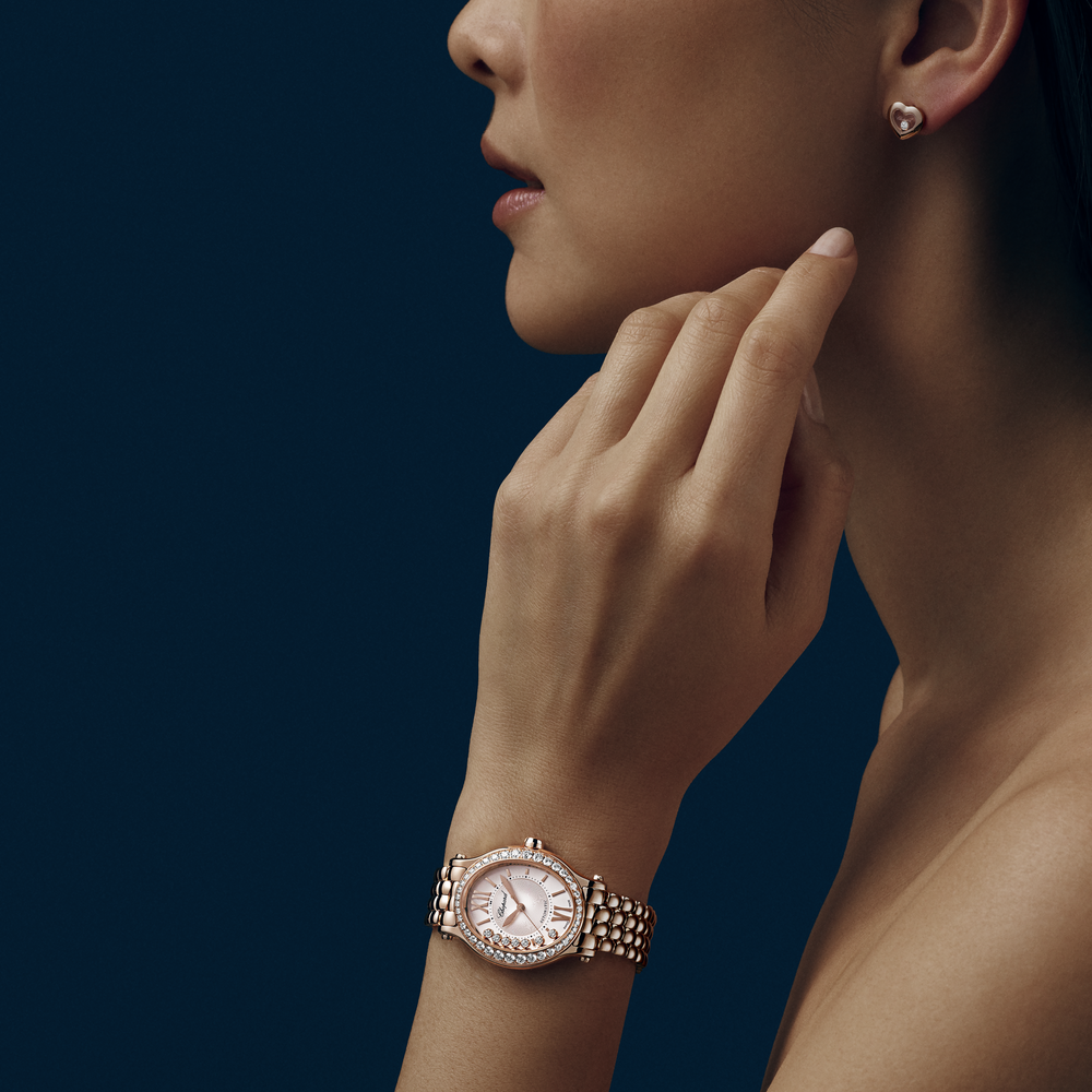 The Happy Sport collection is the emblem of Chopard’s creativity and boldness. Its playful, free-spinning gems, dancing between two sapphire crystals, have captured the imagination since 1993, when Chopard became the first Maison to combine steel and diamonds. Its watchmaking expertise has enabled Chopard to equip the Happy Sport Oval with a mechanical movement featuring an automatic winding mechanism specially developed for feminine cases. Little Diamonds Do Great Things