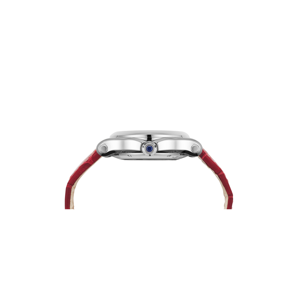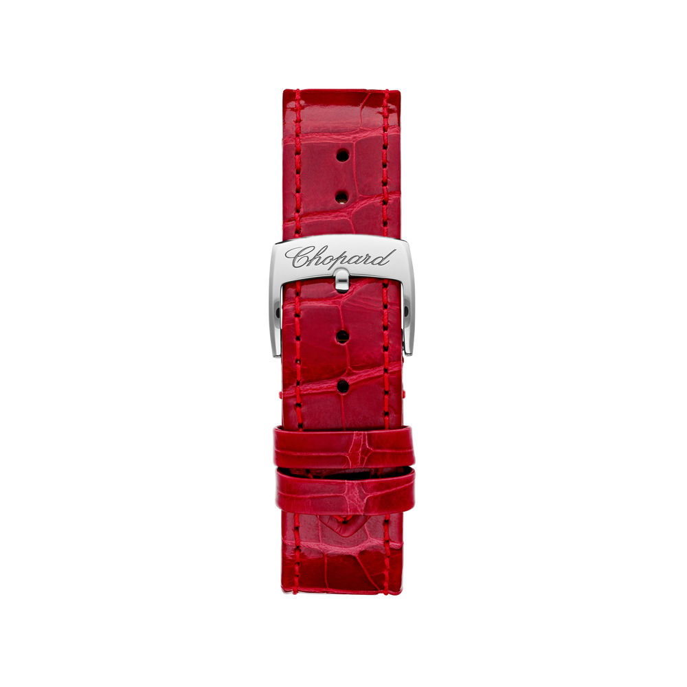 Strap: Alligator strap in red with matching stitching, interchangeable.