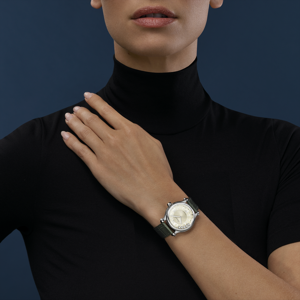The Happy Sport collection is the emblem of Chopard’s creativity and boldness. Its playful, free-spinning gems, dancing between two sapphire crystals, have captured the imagination since 1993, when Chopard became the first Maison to combine steel and diamonds. Its watchmaking expertise has enabled Chopard to equip the Happy Sport 33 mm with a mechanical movement with automatic winding specially developed for feminine cases. Little Diamonds Do Great Things