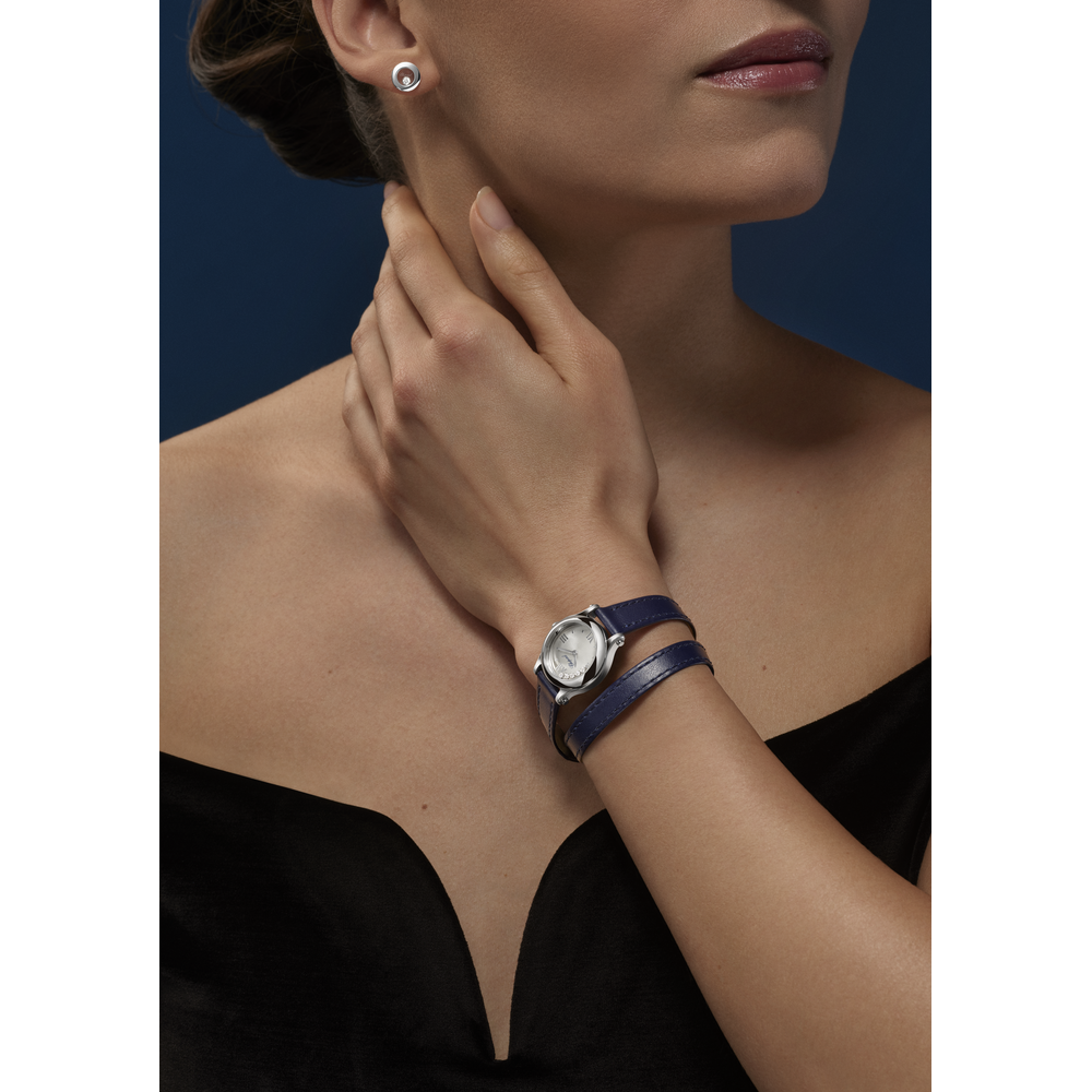 The Happy Sport women's floating diamond watch collection is the emblem of Chopard’s creativity and boldness. Dancing between two sapphire crystals, its playful, free-spinning diamonds have captured the imagination since 1993, when Chopard became the first Maison to combine steel and diamonds. Little Diamonds Do Great Things.