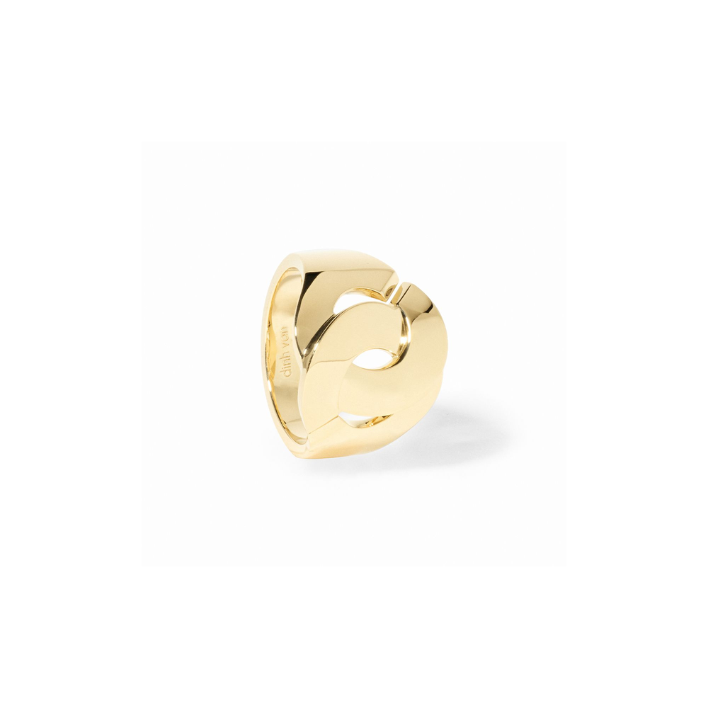 The iconic Menottes dinh van clasp has been turned into a statement of freedom in this 18-carat yellow gold ring. A ring with self-assured character and elegance, in a sleek, stripped-down version. Much more than just a piece of jewelry, this luxury ring is a manifestation of freedom in the form of function-led design: the clasp—at the heart of the motif—becomes the centerpiece for a bold style. A yellow gold ring with a modern look, simultaneously embodying connection and claimed freedom.