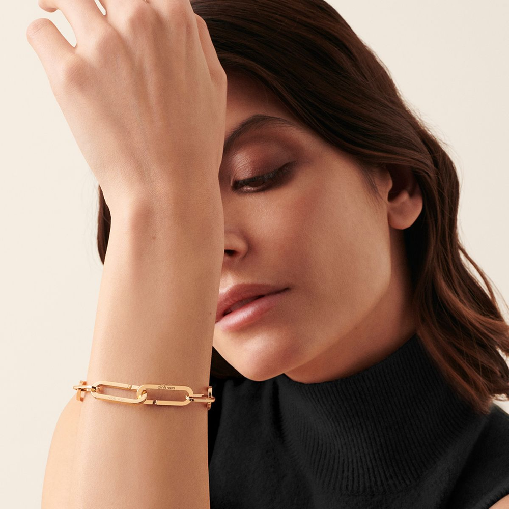 dinh van pays tribute to the Maillon, an essential part of its jewelry grammar, and revisits it in a graphic, signature bracelet. Unisex, the Maillon bracelet is available in sizes ranging from S to XL to suit everyone.