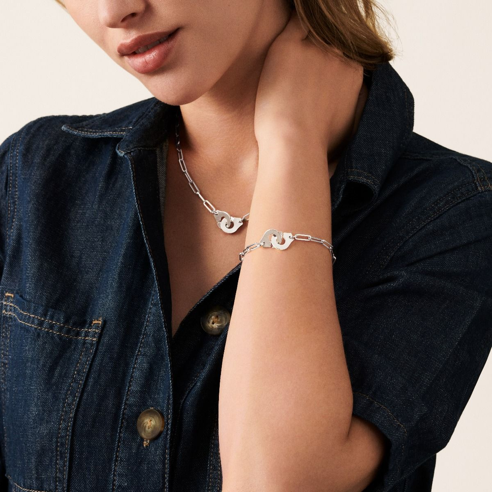 Placed in the center of the jewel, the ingenious Menottes dinh van R12 clasp is mounted on an 18 cm-long chain bracelet.