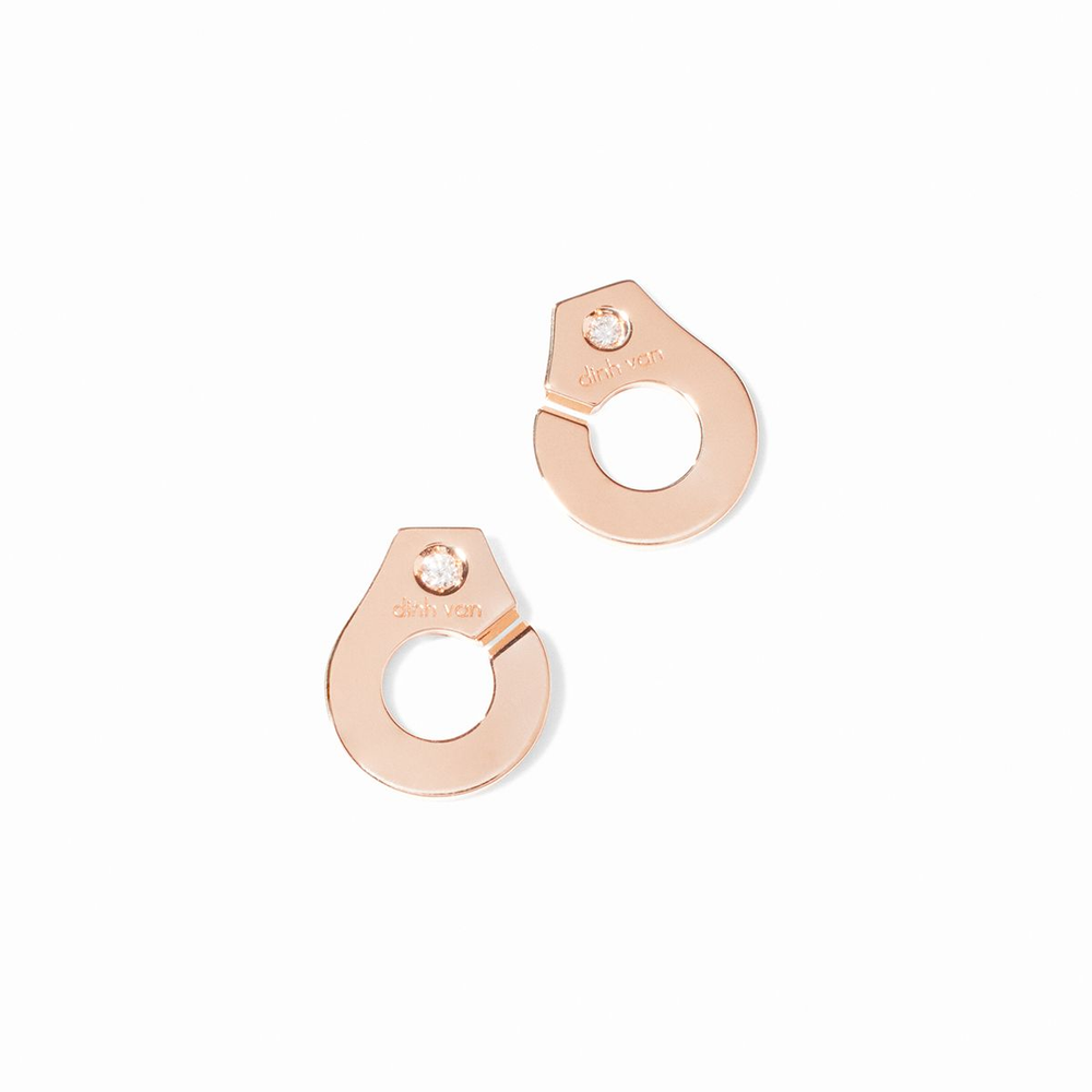 Pair of Menottes dinh van earrings in 18k rose gold and diamonds.