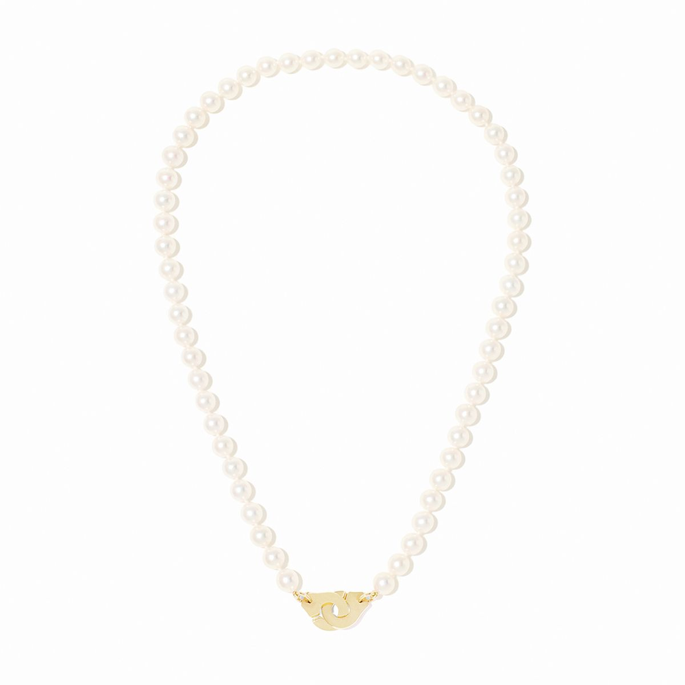 Menottes dinh van pearl medium necklace in 18k white gold and Akoya pearls.