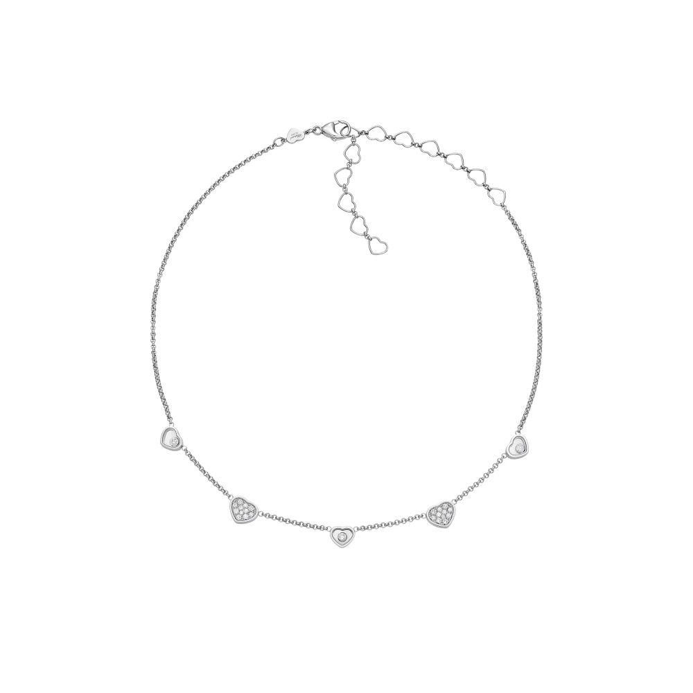 My Happy Hearts jewellery collection borrows its most famous codes, the heart and mobile diamonds, from Chopard's legendary creations. These motifs compose a dainty constellation to be worn alone or stacked as a stylish accessory. Me, Myself and My Happy Hearts.