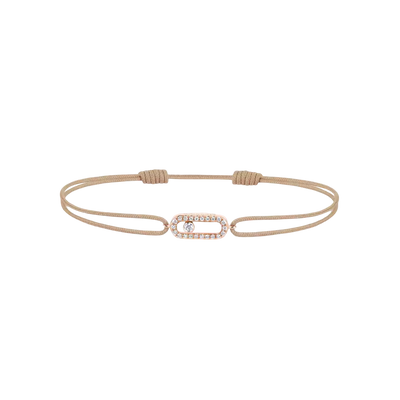 Move Uno Beige Cord Bracelet Pink Gold Diamond Bracelet