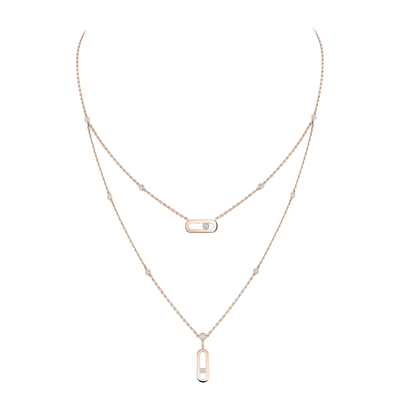 Move Uno 2 Rows Pink Gold Diamond Necklace