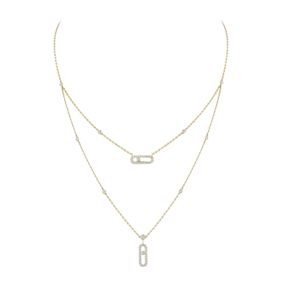 Move Uno 2 Rows Yellow Gold Diamond Necklace