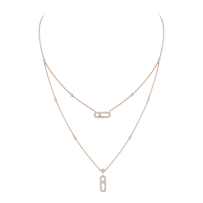 Move Uno 2 Rows Pavé Pink Gold Diamond Necklace