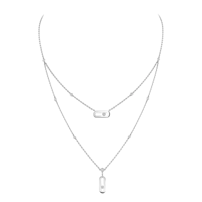 Move Uno 2 Rows Pavé White Gold Diamond Necklace