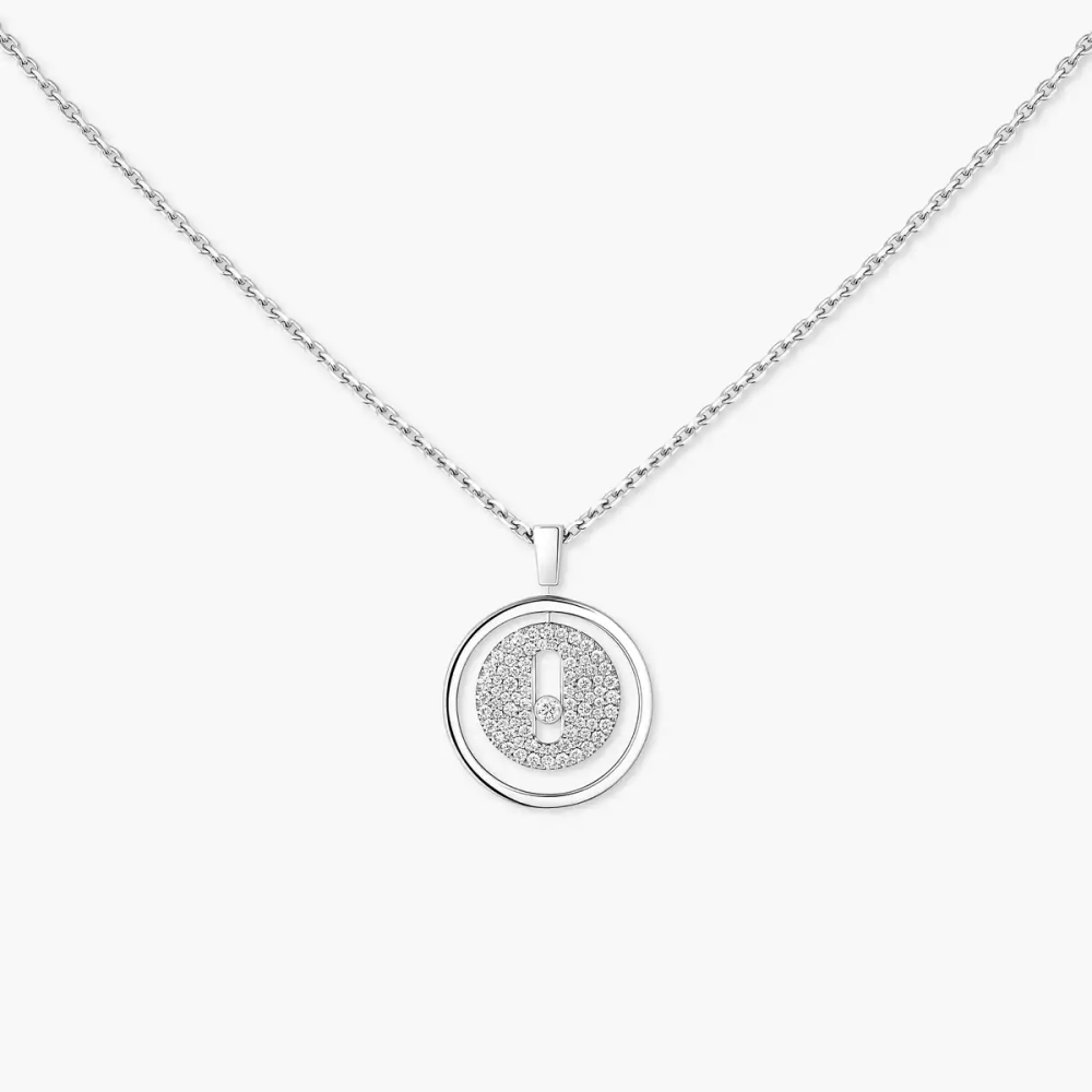 It’s time to get to know the next timeless luxury jewelry piece by Messika. The moving diamond in this white gold diamond necklace is encircled by a halo of light. The entire piece is attached to a chain with a secret sliding mechanism that makes it possible to adjust the length of this white gold diamond necklace as you wish. Something to beautify all of your outfits and elevate any T-shirt! Discover online all the white gold diamond necklaces collection and explore all Messika diamond jewels for women and men!
