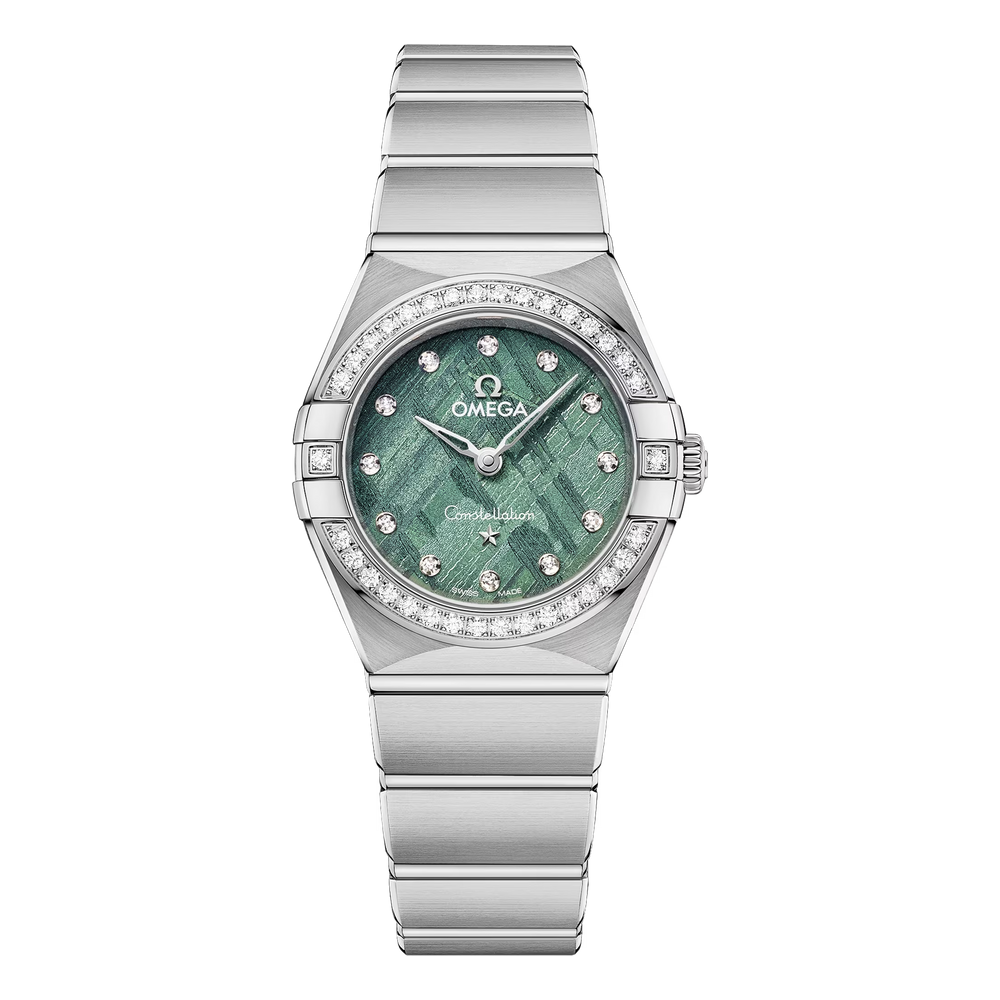 The astonishing dial is formed from a genuine piece of iron meteorite, which has been given a green colour treatment. The natural pattern within the meteorite is unique to each model, meaning that no two dials are ever the same. It is completed with diamond hour markers, and a Constellation star in 18K white gold.
