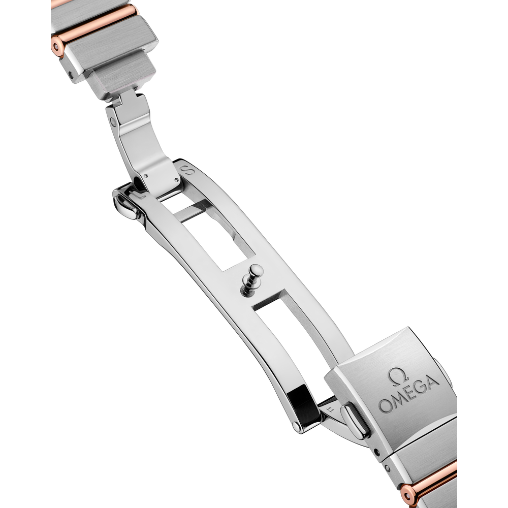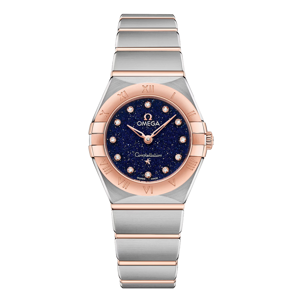 The dramatic and enduring design of the OMEGA Constellation is characterised by its famous half-moons, “claws” on the case and mono-rang bracelet.This 25 mm 18K Sedna™ gold and stainless steel model features a bezel with engraved Roman numerals and a blue aventurine glass dial with diamond hour markers. The hands, OMEGA logo, Constellation star and diamond holders are also in 18K Sedna™ gold.At the heart of this timepiece is the OMEGA Calibre 4061, while the caseback is stamped with the Constellation Observatory medallion.
