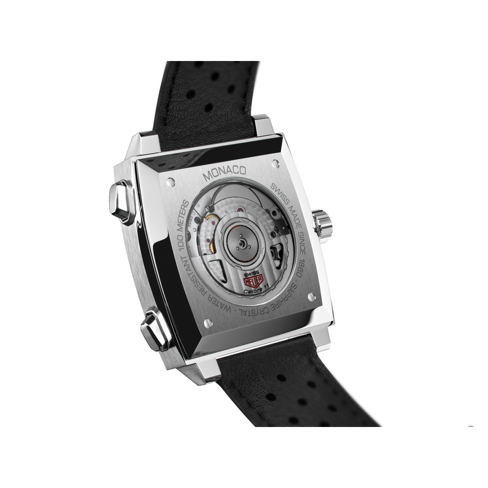 This automatic chronograph Monaco Calibre 11 is THE original model, the very first square and waterproof chronograph in the world. Revolutionary and icon of the "King of cool" Steve McQueen, this calibre 11 edition still features the famous crown on the left; it was a way of showing that manual winding was no longer necessary.