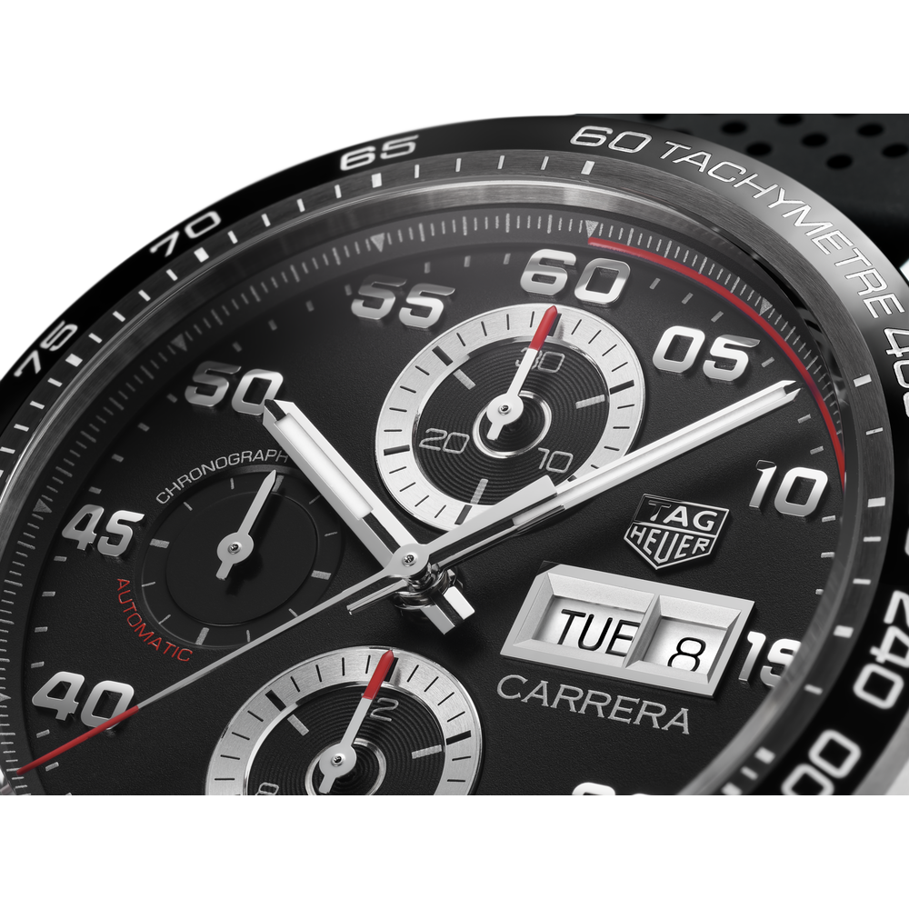 As daring as ever, the resilient TAG Heuer Carrera is driven to the next level thanks to new details on this proudly upgraded chronograph. Improved dial and case elements prove the boldness and conviction of this great classic.