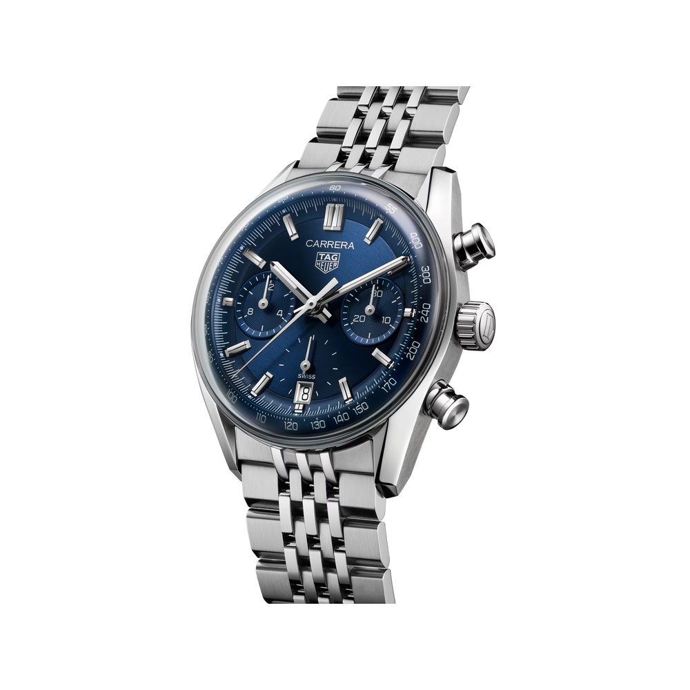 With its striking signature TAG Heuer Carrera blue looks, this reinterpretation of the mythical Heuer Carrera makes a statement of classic elegance. Bringing out the best of the iconic Carrera with bold technical additions, this watch proudly displays its thrilling design.