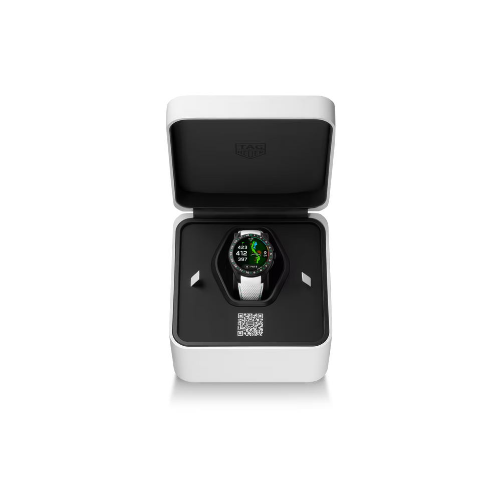 Crafted for golf enthusiasts, the TAG Heuer Connected Calibre E5 Golf Edition (45mm) balances style with sport-focused precision. Its black sandblasted titanium case with 18-hole bezel engravings, plus dedicated golf application, makes this a sophisticated companion for any game. This model optimizes the golf experience with in-depth tracking and custom TAG Heuer features.