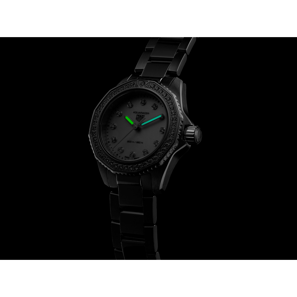 Decked out with a VS diamond-set bezel and dial, this TAG Heuer Aquaracer combines absolute elegance with extreme robustness. With a 30mm steel case and reliable quartz movement, this versatile tool watch is the perfect everyday companion.