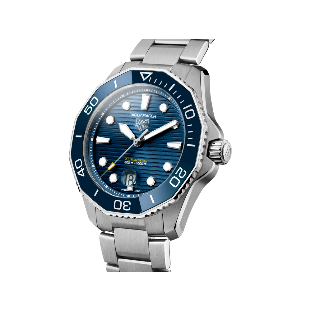 Powered by the Calibre 5 automatic movement, the new TAG Heuer Aquaracer shows a blue sunray brushed dial and offers water resistance up to 300 meters. A true diving watch, built to endure any conditions, any day.