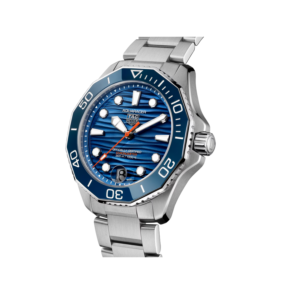Explore the deep ends with this tremendously robust TAG Heuer Aquaracer powered by the COSC-certified manufactured Calibre TH31-00. This 42 mm watch stands fit to withstand any marine adventure, from deep-sea exploration to casual sailing.