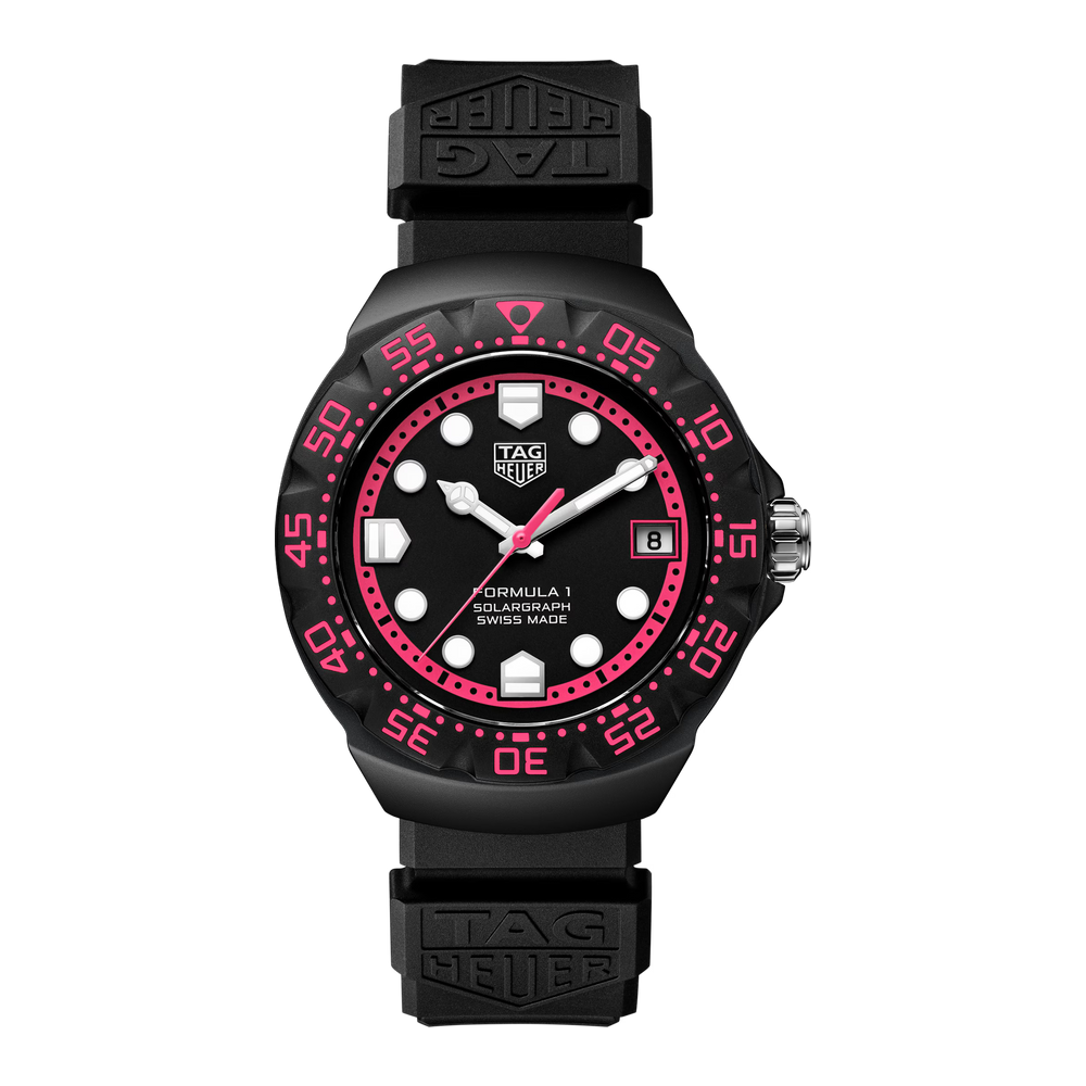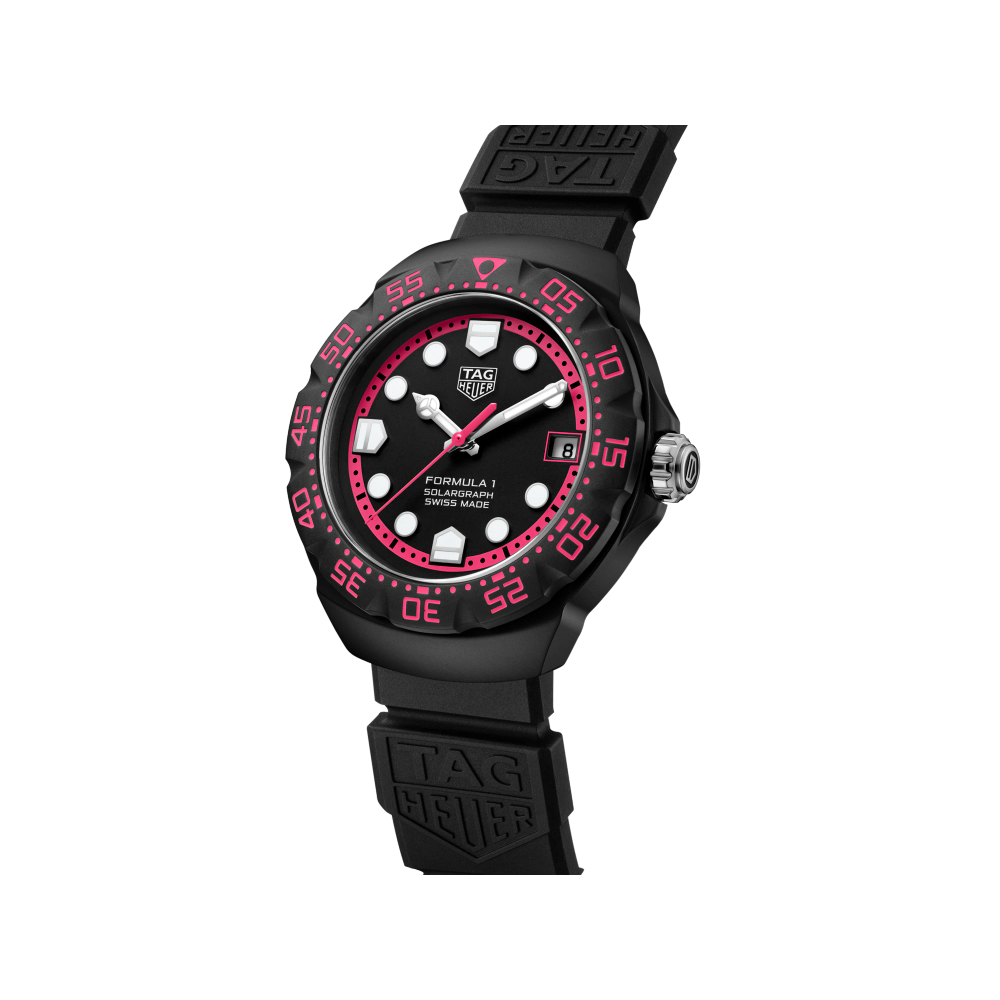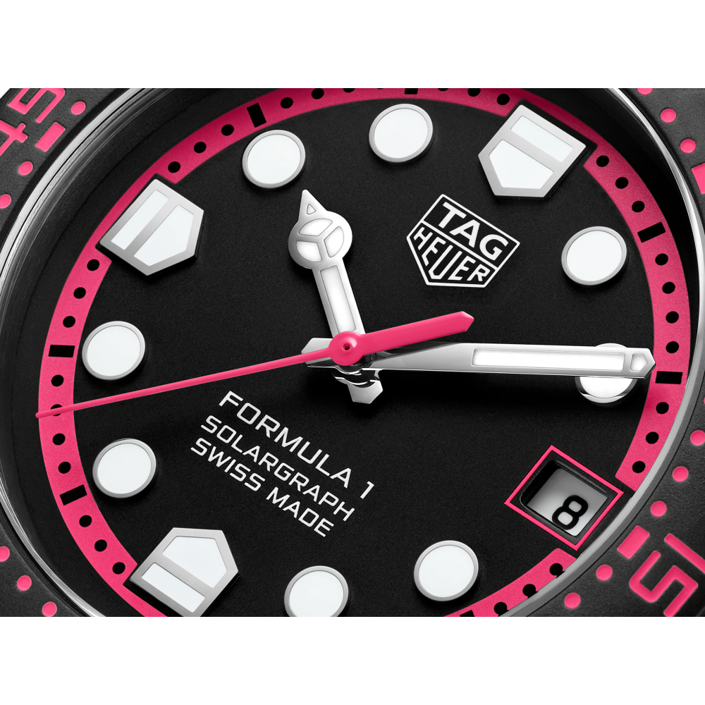 Bold and energetic, this 38 mm TAG Heuer Formula 1 pairs high-performance engineering with an eye-catching pink accent. A confident fusion of sport, style, and solar-powered performance for those who thrive in every moment.