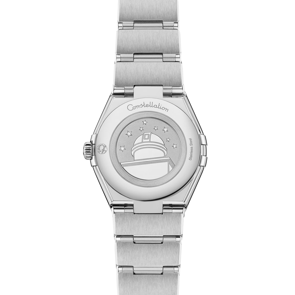 The watch is presented on a signature polished mono-rang bracelet with easy comfort-adjustment, and is powered by the OMEGA Calibre 4061, which sits behind a stamped Constellation Observatory medallion on the caseback.