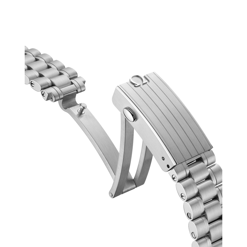 The Speedmaster Moonwatch is one of the world’s most iconic timepieces. Having been a part of all six moon landings, the legendary chronograph is an impressive representation of the brand’s adventurous pioneering spirit.Presented on a brushed five-arched-links-per-row bracelet, this 42 mm Moonwatch in stainless steel features hesalite glass on the front and an embossed Seahorse medallion on the caseback. Inspired by the 4th generation Speedmaster style worn on the moon, it also includes an asymmetrical case, black step dial and the famous dot over 90 on the anodised aluminium bezel ring.The watch is driven by the OMEGA Co-Axial Master Chronometer Calibre 3861, which powers the small seconds sub-dial, 30-minute recorder and 12-hour recorder, along with the central chronograph function.