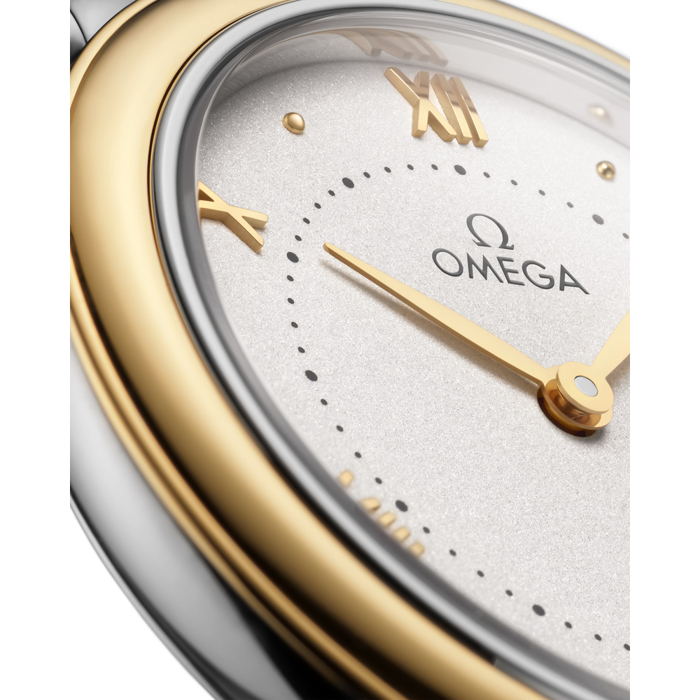 This watch is presented on a stainless steel - yellow gold bracelet and is driven by the OMEGA Quartz Calibre 4061, with a battery life of at least 48 months.
