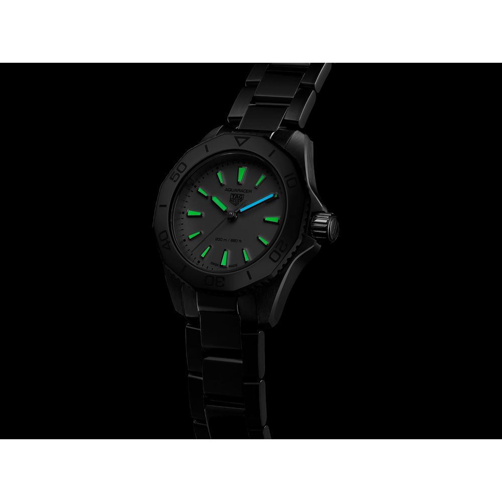 Featuring a delicate white mother-of-pearl dial, this 30mm TAG Heuer Aquaracer strikes the right balance between elegance and technicity. With its ultra-resistant steel case, 60-minute scale bezel and bracelet, this timepiece is eager to go further.