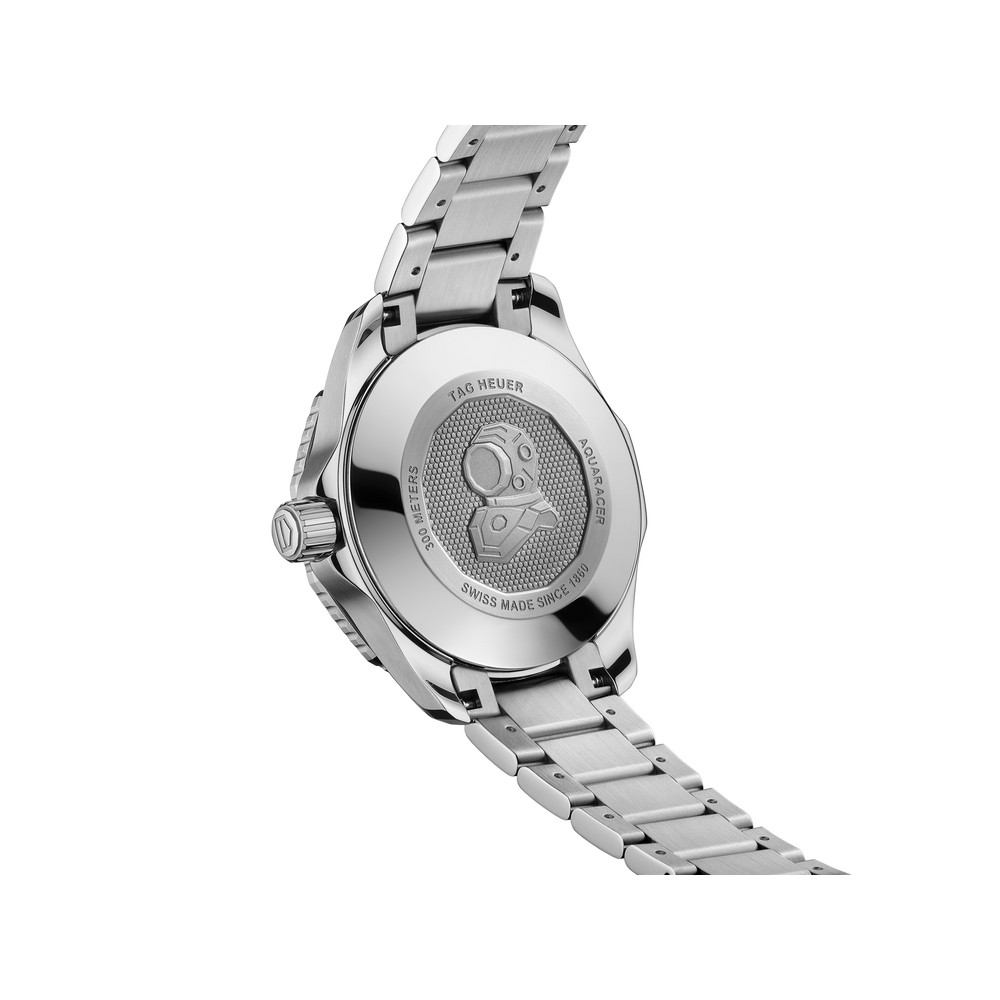 Meet the perfect diving companion in 36mm. This special edition TAG Heuer Aquaracer, with its silver-lacquered dial, is ready for any challenge. Bold black gold-plated hands and markers applied with white Super-LumiNova® offer absolute legibility day and