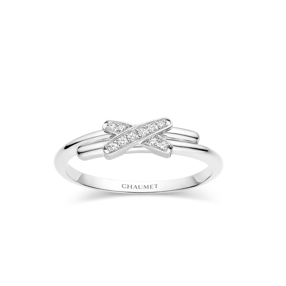 Bague Jeux de Liens en or blanc, serti de diamants taille brillant.