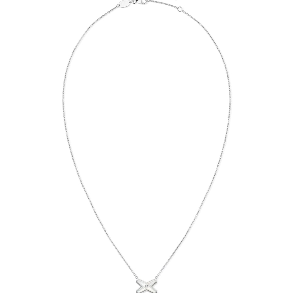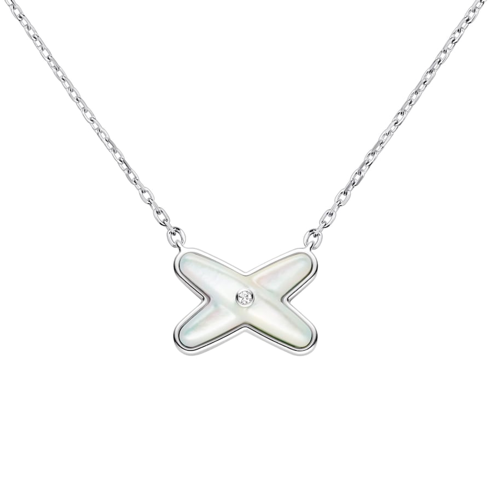 Pendentif Jeux de Liens en or blanc, serti de nacre et d'un diamant taille brillant.