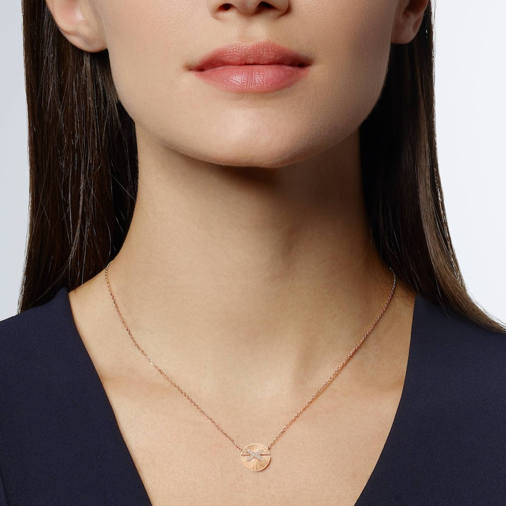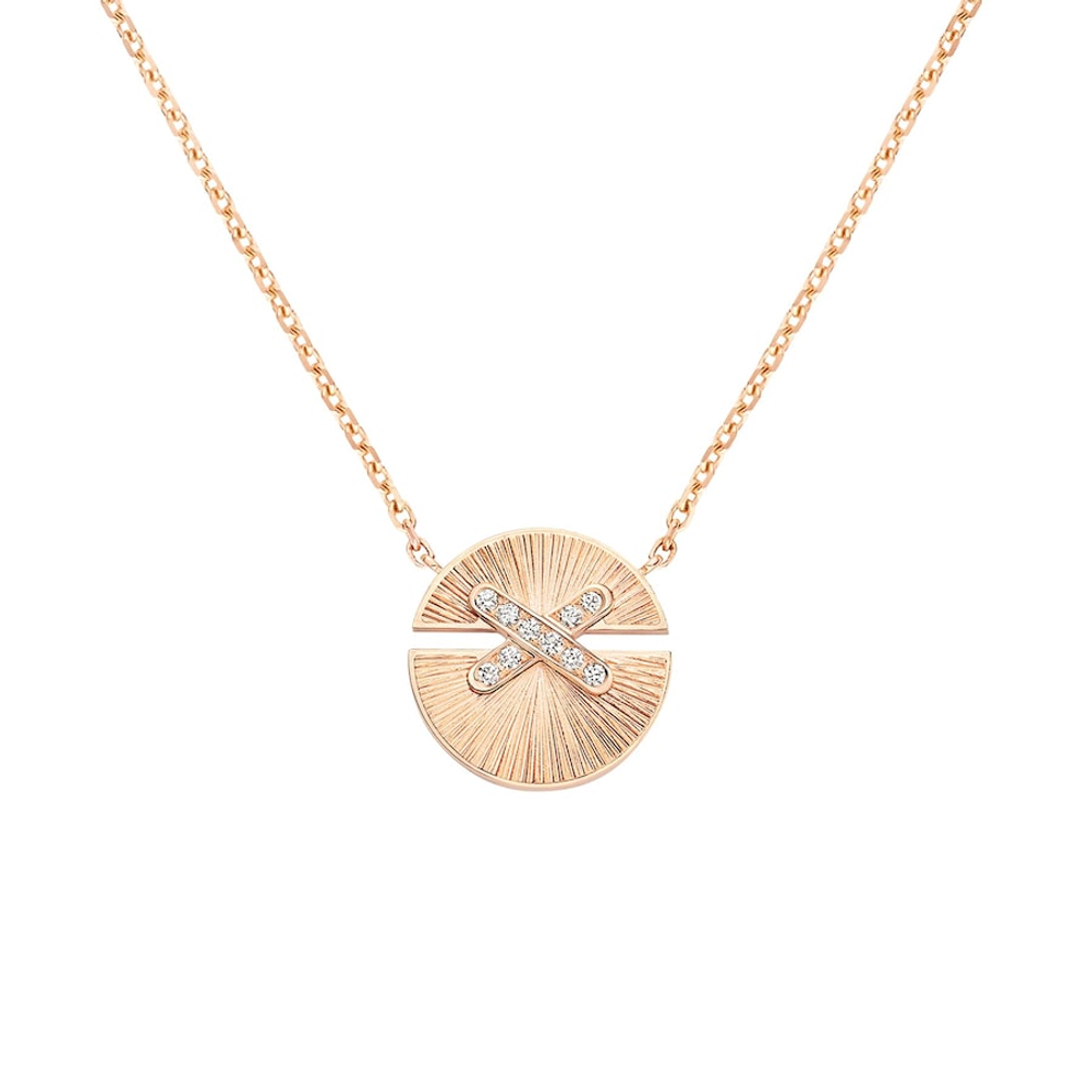 Pendentif à graver Jeux de Liens Harmony petit modèle en or rose, serti de diamants taille brillant. Service de gravure, disponible en ligne et en boutique dans l'année suivant votre achat.