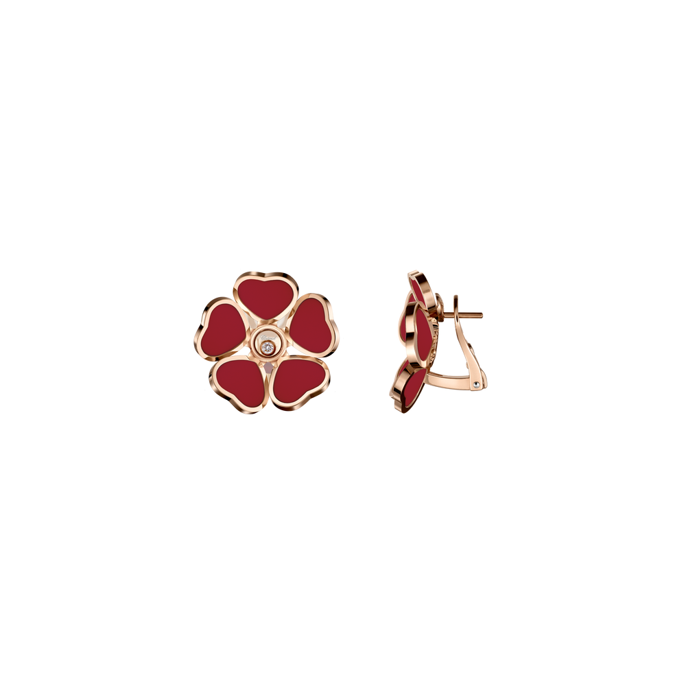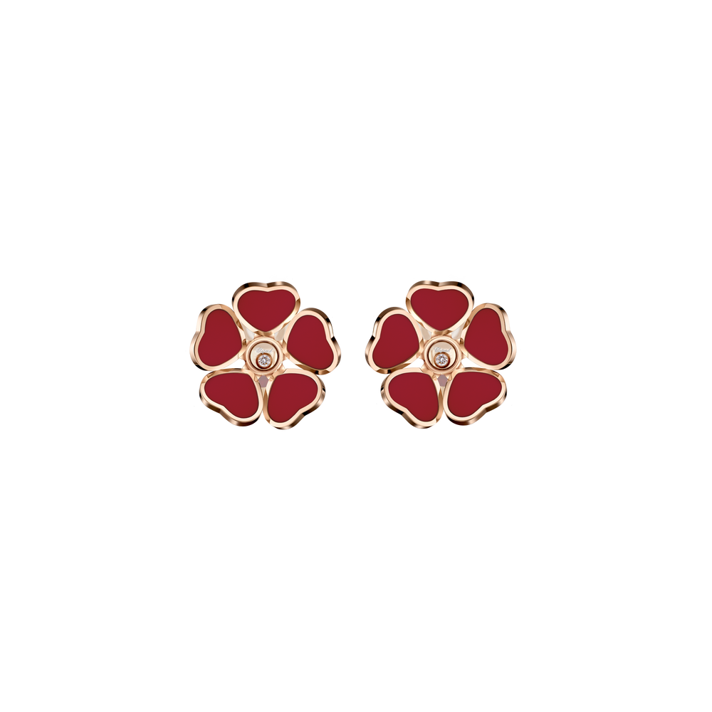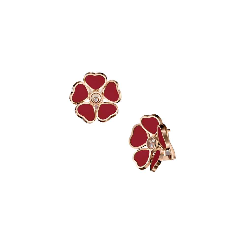 Happy Hearts Flowers joue sur les symboles de la Maison en disposant autour d'un diamant mobile une corolle de cinq cœurs, formant ainsi des fleurs délicates et extrêmement féminines. Little Diamonds Do Great Things