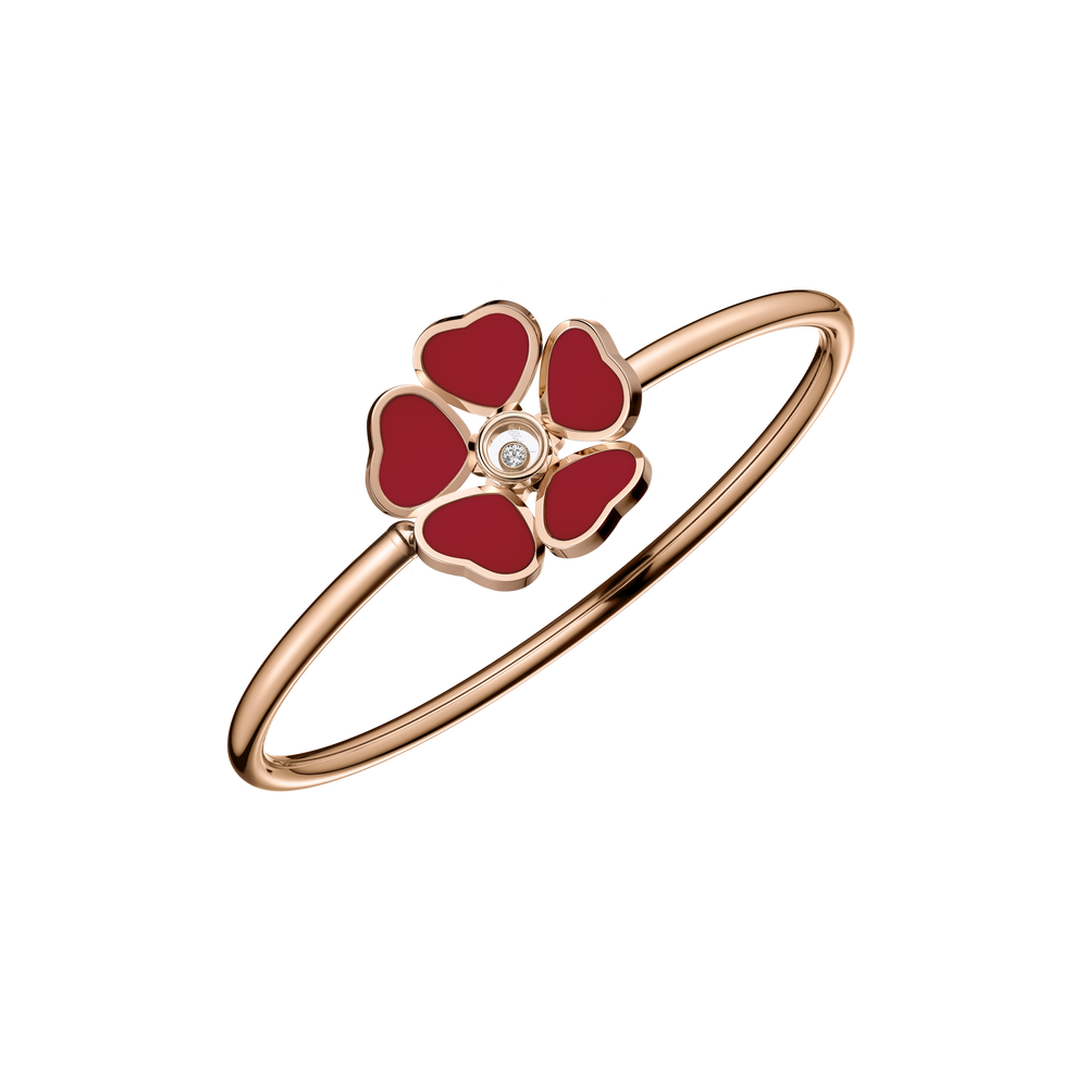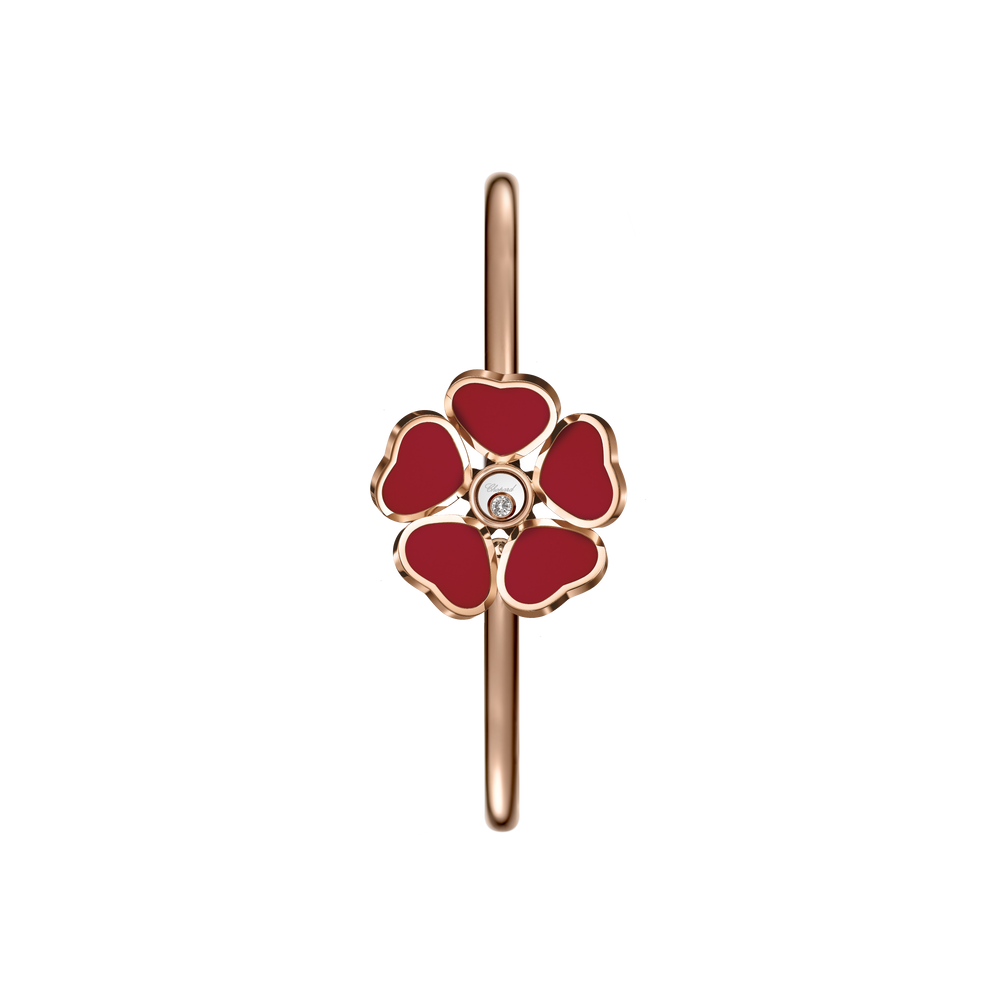 Happy Hearts Flowers joue sur les symboles de la Maison en disposant autour d'un diamant mobile une corolle de cinq cœurs, formant ainsi des fleurs délicates et extrêmement féminines. Little Diamonds Do Great Things