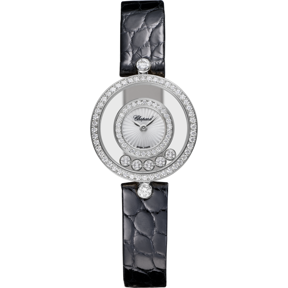 Depuis 1976 et l'invention de la première montre Happy Diamonds, les diamants mobiles illuminent joyeusement la collection. Les montres Happy Diamonds, c’est d’abord un esprit d’indépendance, ludique et aérien, qui se prête à d’infinies métamorphoses. Evoluant dans la transparence absolue de deux glaces saphir, les Happy Diamonds donnent l’impression que les diamants sont en contact direct avec la peau. Le célèbre garde-temps s’offre désormais des nouveaux bracelets en cuir long et souple qui parcourt deux fois le tour du poignet, rehaussant la présence magnétique de cette montre-bracelet au charme joyeux. Little Diamonds Do Great Things