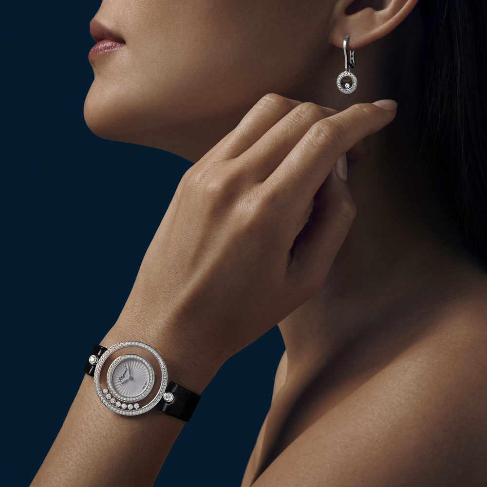 Depuis 1976 et l'invention de la première montre Happy Diamonds, les diamants mobiles illuminent joyeusement la collection. Les montres Happy Diamonds, c’est d’abord un esprit d’indépendance, ludique et aérien, qui se prête à d’infinies métamorphoses. Evoluant dans la transparence absolue de deux glaces saphir, les Happy Diamonds donnent l’impression que les diamants sont en contact direct avec la peau. Faire danser des diamants sur son poignet, une espièglerie si élégante… Little Diamonds Do Great Things