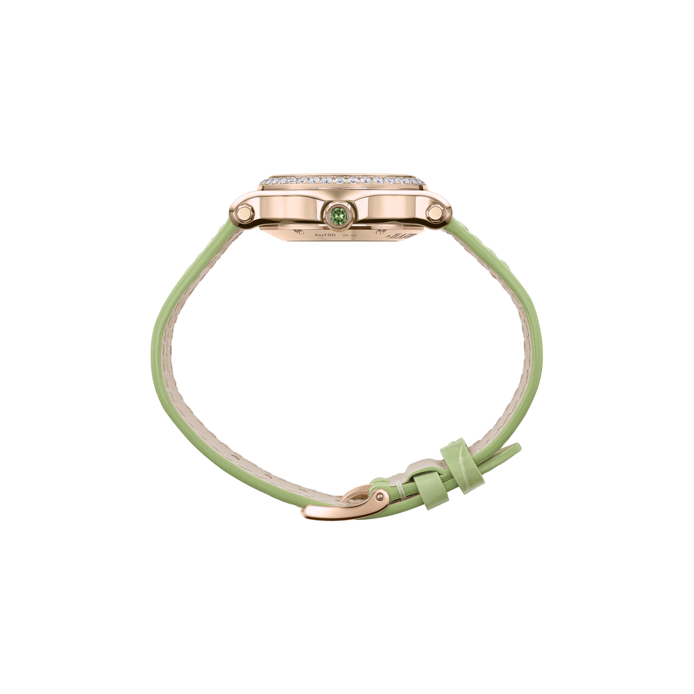 La collection de montres à diamants mobiles pour femme Happy Sport est l’emblème même de la créativité et de l’audace de Chopard. Les pierres précieuses enjouées de cette montre en nacre verte et diamants, dansant entre deux glaces saphirs, font rêver depuis 1993, date à laquelle Chopard est devenue la première Maison à associer acier et diamants. Grâce à son expertise horlogère, Chopard a doté la montre en nacre verte et diamants Happy Sport 30 mm d’un mouvement mécanique à remontage automatique spécialement développé pour les boîtes féminines. Little Diamonds Do Great Things.