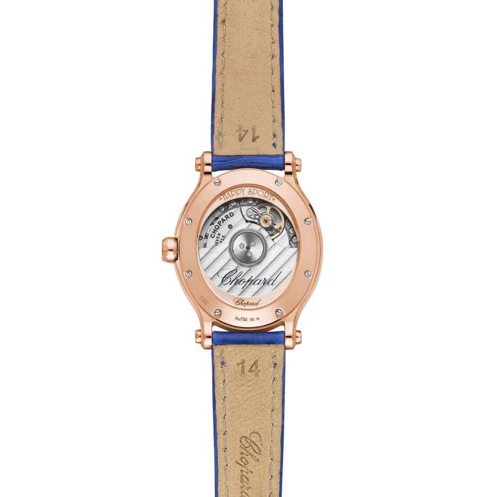 La collection Happy Sport est l’emblème même de la créativité et de l’audace de Chopard. Ses pierres précieuses enjouées, dansant entre deux glaces saphirs, font rêver depuis 1993, date à laquelle Chopard est devenue la première Maison à associer l’acier et les diamants. Grâce à son expertise horlogère, Chopard a doté la Happy Sport Oval d’un mouvement mécanique à remontage automatique développé spécialement pour les boîtes féminines. Little Diamonds Do Great Things