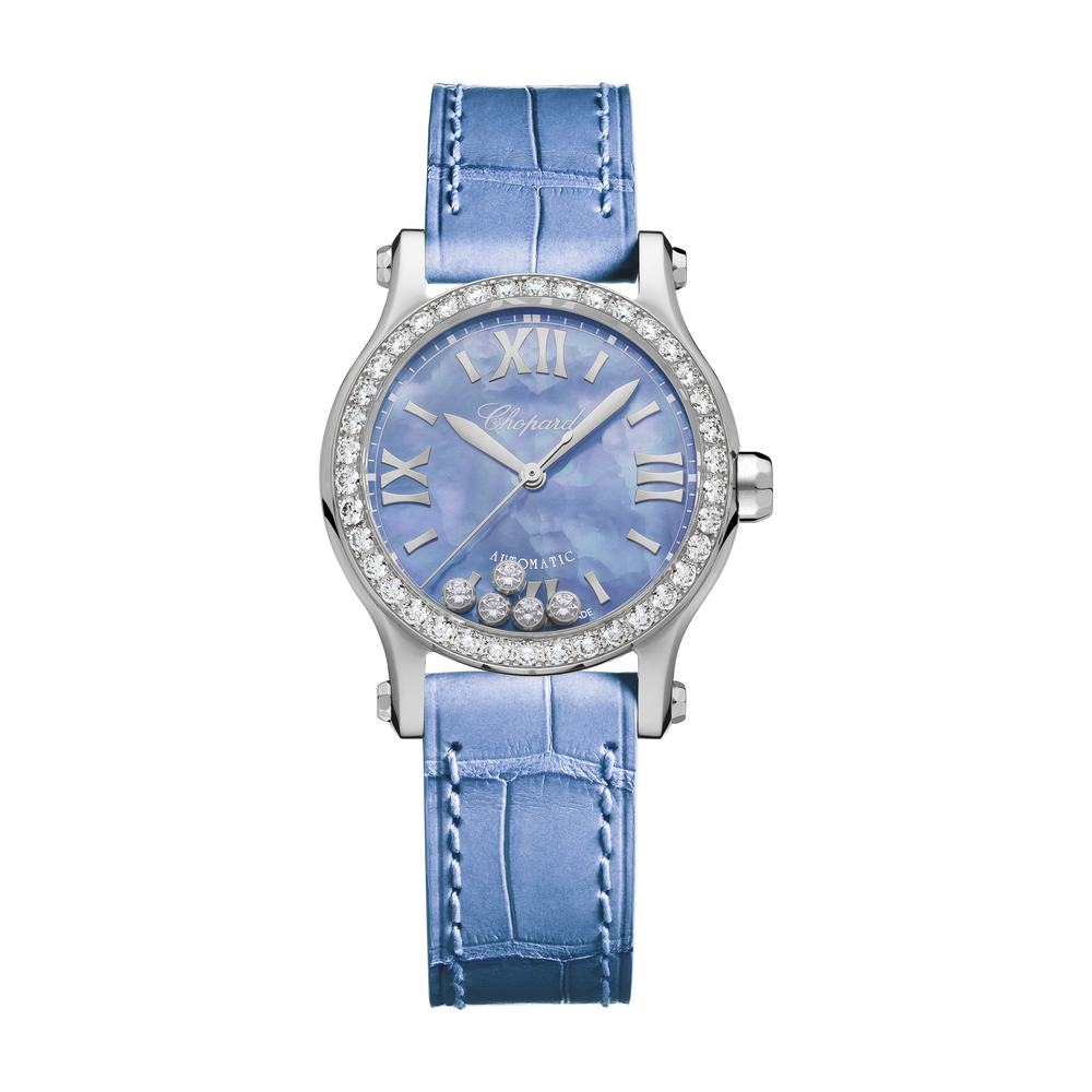La collection Happy Sport est l’emblème même de la créativité et de l’audace de Chopard. Ses pierres précieuses enjouées, dansant entre deux glaces saphirs, font rêver depuis 1993, date à laquelle Chopard est devenue la première Maison à associer l’acier et les diamants. Grâce à son expertise horlogère, Chopard a doté la Happy Sport 30 mm d’un mouvement mécanique à remontage automatique développé spécialement pour les boîtes féminines. Little Diamonds Do Great Things