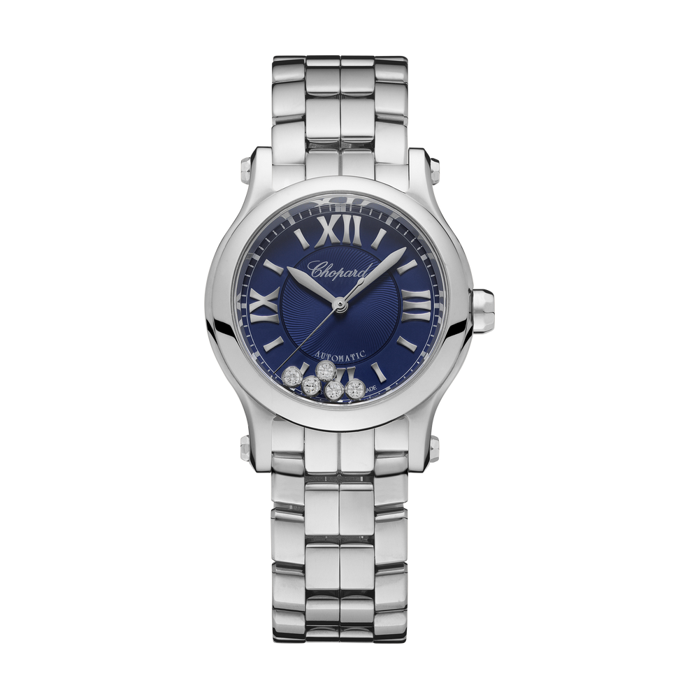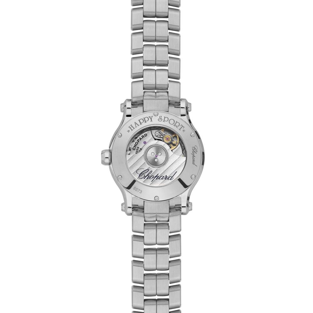 La collection Happy Sport est l’emblème même de la créativité et de l’audace de Chopard. Ses pierres précieuses enjouées, dansant entre deux glaces saphirs, font rêver depuis 1993, date à laquelle Chopard est devenue la première Maison à associer l’acier et les diamants. Grâce à son expertise horlogère, Chopard a doté la Happy Sport 30 mm d’un mouvement mécanique à remontage automatique développé spécialement pour les boîtes féminines. Little Diamonds Do Great Things