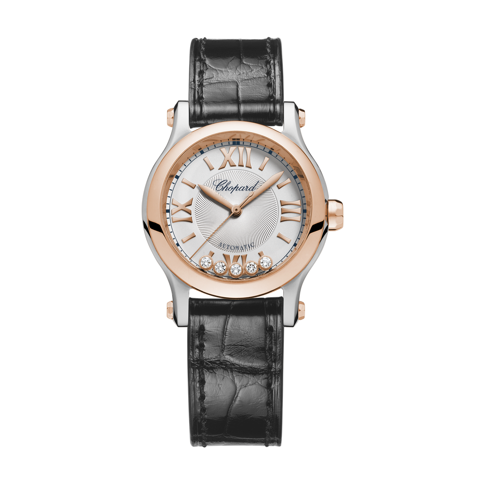 La collection Happy Sport est l’emblème même de la créativité et de l’audace de Chopard. Ses pierres précieuses enjouées, dansant entre deux glaces saphirs, font rêver depuis 1993, date à laquelle Chopard est devenue la première Maison à associer l’acier et les diamants. Grâce à son expertise horlogère, Chopard a doté la Happy Sport 30 mm d’un mouvement mécanique à remontage automatique développé spécialement pour les boîtes féminines. Little Diamonds Do Great Things