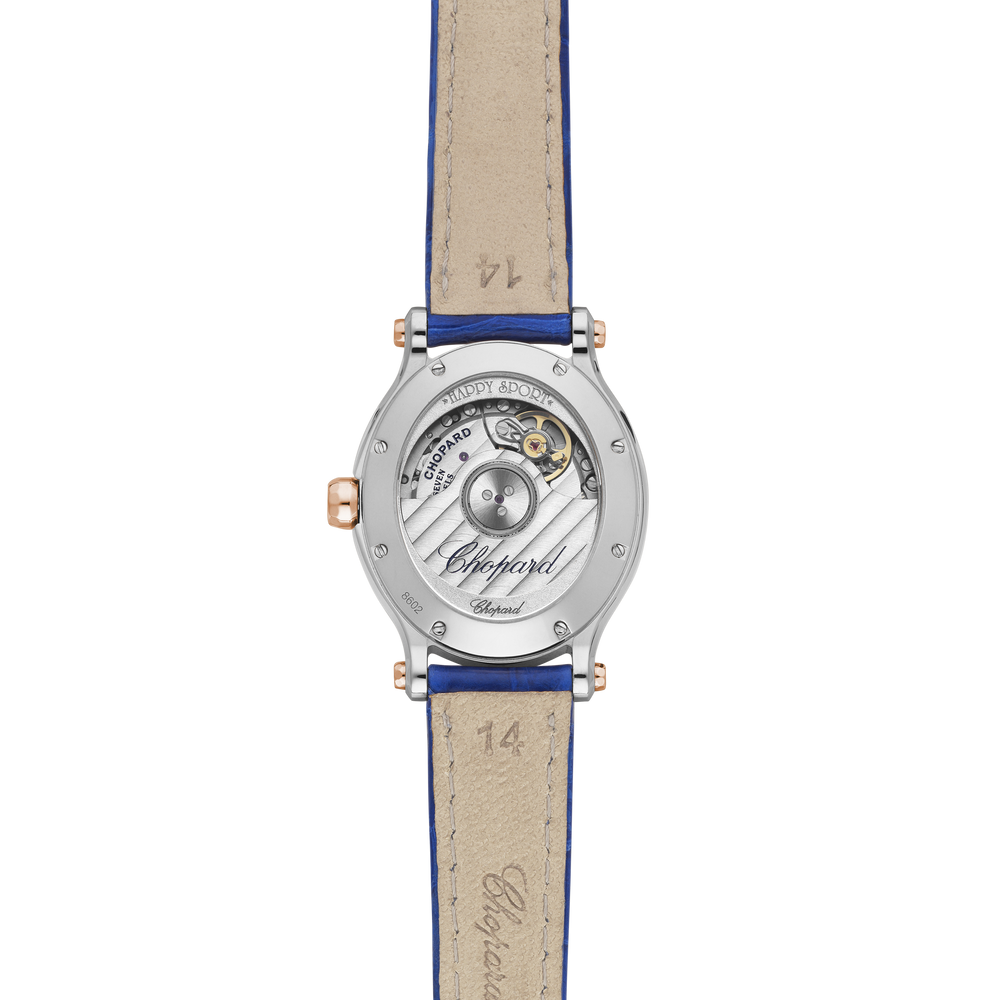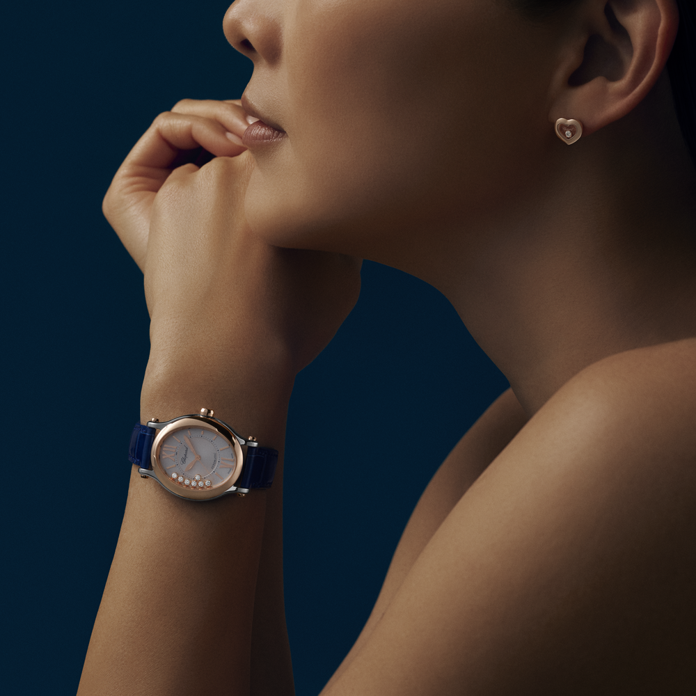 La collection Happy Sport est l’emblème même de la créativité et de l’audace de Chopard. Ses pierres précieuses enjouées, dansant entre deux glaces saphirs, font rêver depuis 1993, date à laquelle Chopard est devenue la première Maison à associer l’acier et les diamants. Grâce à son expertise horlogère, Chopard a doté la Happy Sport Oval d’un mouvement mécanique à remontage automatique développé spécialement pour les boîtes féminines. Little Diamonds Do Great Things