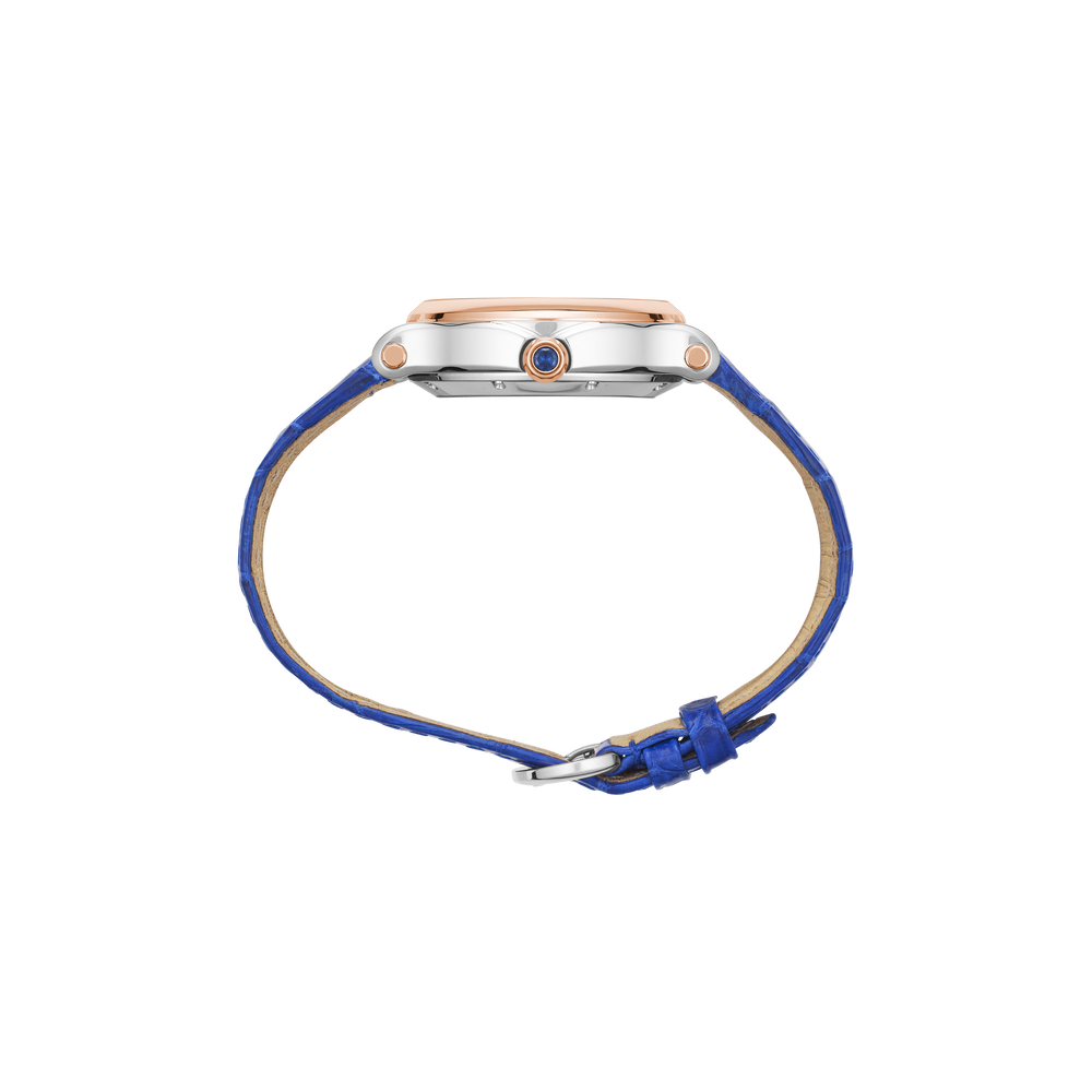 Bracelet: Bracelet en alligator bleu avec surpiqûres ton sur tonEn raison de restrictions de livraison, le bracelet en cuir d’alligator sera remplacé par un bracelet en cuir de veau.