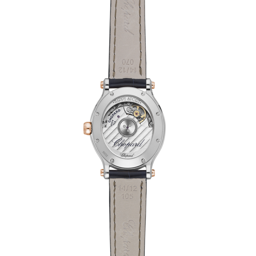 La collection Happy Sport est l’emblème même de la créativité et de l’audace de Chopard. Ses pierres précieuses enjouées, dansant entre deux glaces saphirs, font rêver depuis 1993, date à laquelle Chopard est devenue la première Maison à associer l’acier et les diamants. Grâce à son expertise horlogère, Chopard a doté la Happy Sport Oval d’un mouvement mécanique à remontage automatique développé spécialement pour les boîtes féminines. Little Diamonds Do Great Things